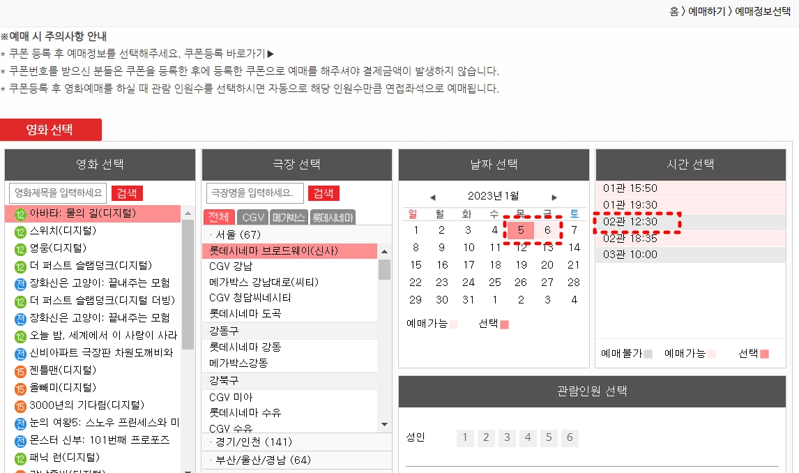 북티켓은 좌석지정예약제이므로 해당 영화관 홈페이지에서 좌석상황을 확인한 후 원하시는 좌석을 지정해 예약해주시면 그 좌석으로 예매가 진행됩니다.
