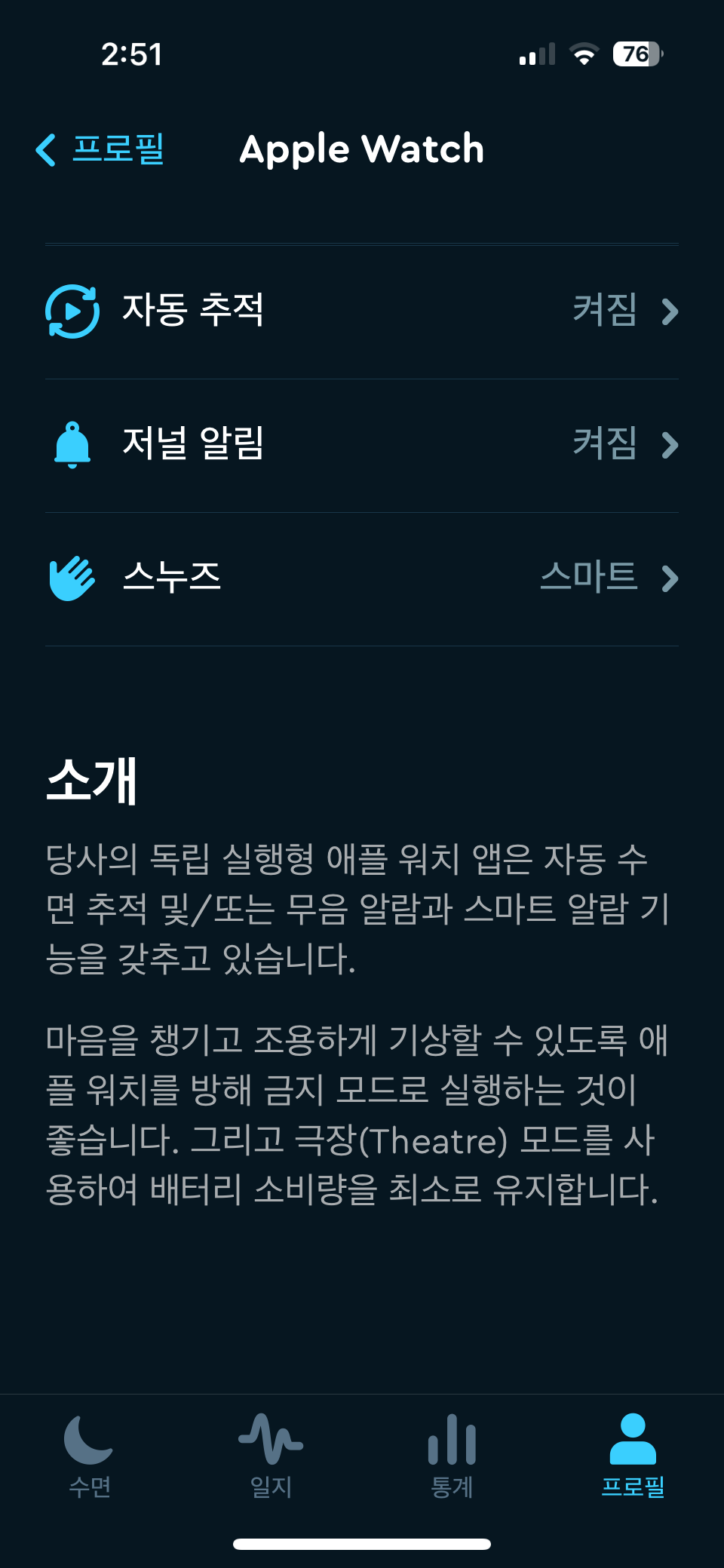 스마트 알람 대신 정각 알람, 알람 없이 수면 통계 반영 등 3가지 옵션을 선택할 수 있다.